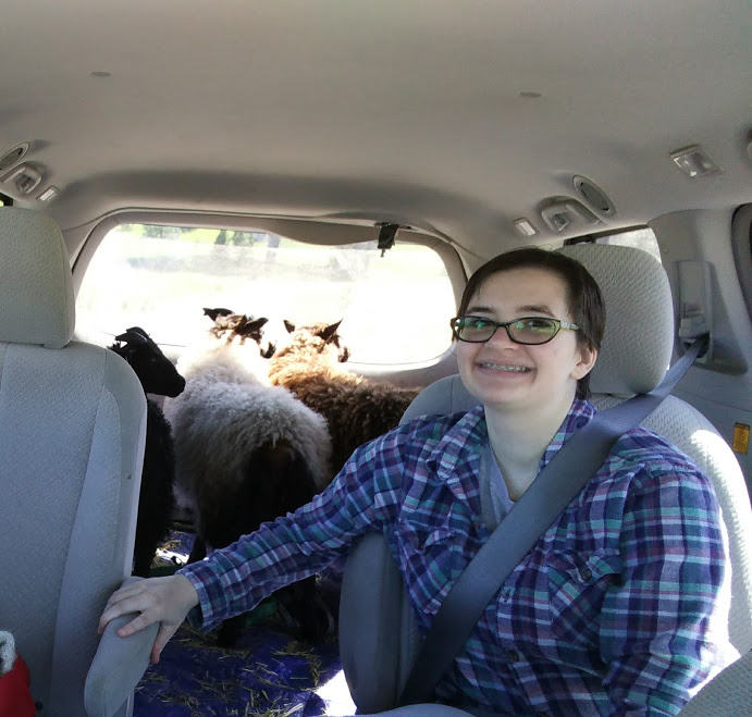 As far as the actual transporting, things went pretty smoothly...we actually took a detour to my husband's office so that their receptionist could come out and see them - and we ended up with a couple of other visitors as well! Everyone was fascinated to learn more about Icelandics and sheep, and to see just how cute these little sweethearts are!