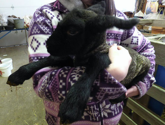 Sprinkle was born second, and she's the larger one. She was also born back-feet first as Lee didn’t want to push her back in or re-position her. Sheep are supposed to be born facing forward, head above and between the front legs (nose and toes).