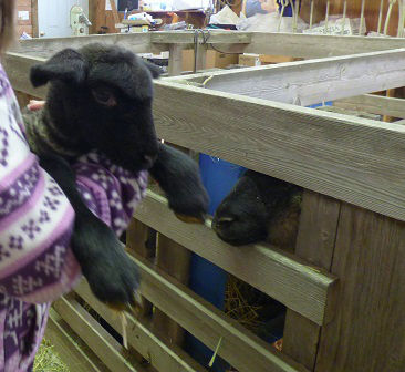 We also got to see Samson, who is huge (probably twice as big as Cupcake or Sprinkle)! He was very interested in everything that was going on. I wish we could have held him, too, but he's a very big lamb. I don't know if we could have easily held him!