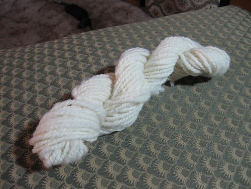Once I get some singles from Black Velvet spun, I will hold all three of them together and do a couple of duplicate stitch sheep on the sleeves of my Icelandic sweater, right above the cuffs...the singles are quite thin, so I think holding the strands together to make a 3-ply should work nicely to make fluffy sheep!