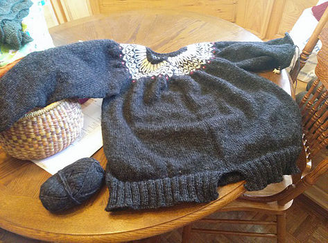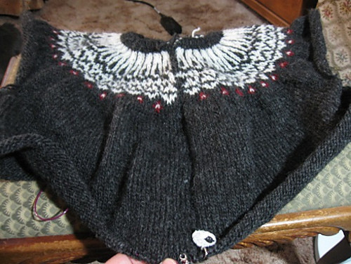Here are a couple of progress pictures of the Icelandic sweater: