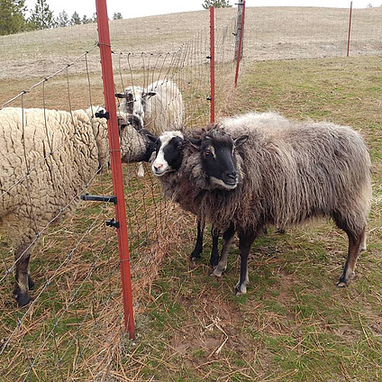 Once everyone was sheared and back home, we let them loose in the yard together. Of course, there was some scuffling, but for the most part, they were so interested in the grass they hadn't been able to eat yet that they really didn't care too much about what the other members of the flock were up to! And over the last several weeks, I've watched these flocks of four and two truly become a flock of six. As I've been working on this post, the weather has been predictably unpredictable - typical for Moscow this time of year - and the beautiful sunshine suddenly turned into a hailstorm. I quickly went out to make sure everyone had come up from the east pasture into the barn - saw the Fab Four in there, so shut the gate on their pasture. When Ruby and Garnet came up, I tried calling them into their pasture, assuming they would still want to run up and be in The Prancing Pony...nope. They wanted to be with THEIR flock in Bag End. So I opened that gate and in they ran - Garnet laid down while Ruby started eating from the hay feeder alongside Panda Bear. Daisy and Black Velvet were just happy that I was there, reassuring them about the noisy hail on their roof and providing plenty of pets in the process.