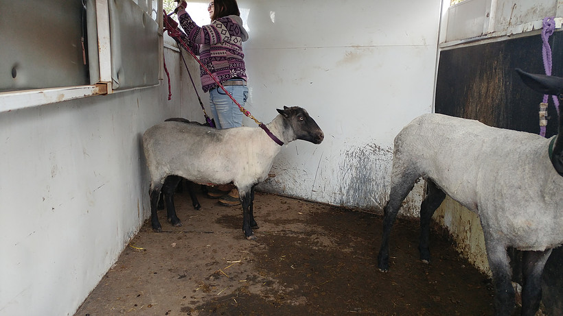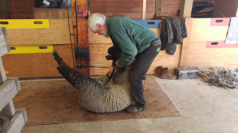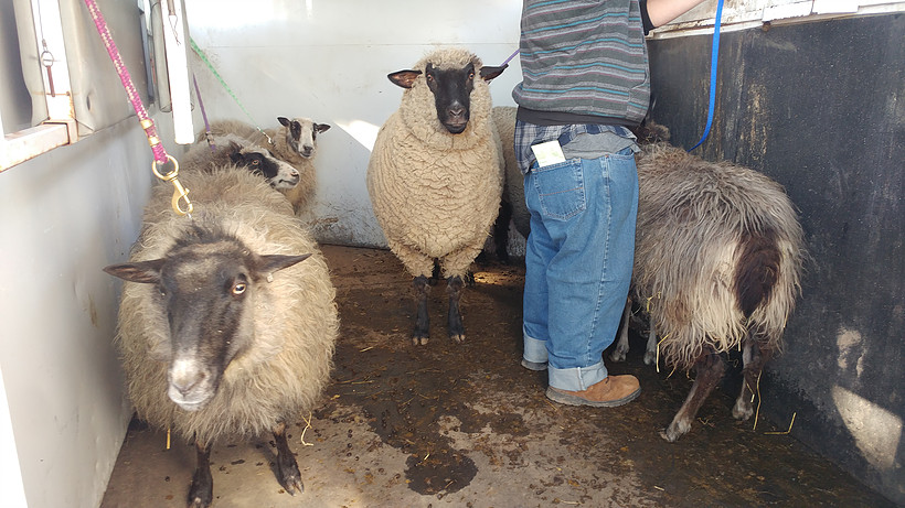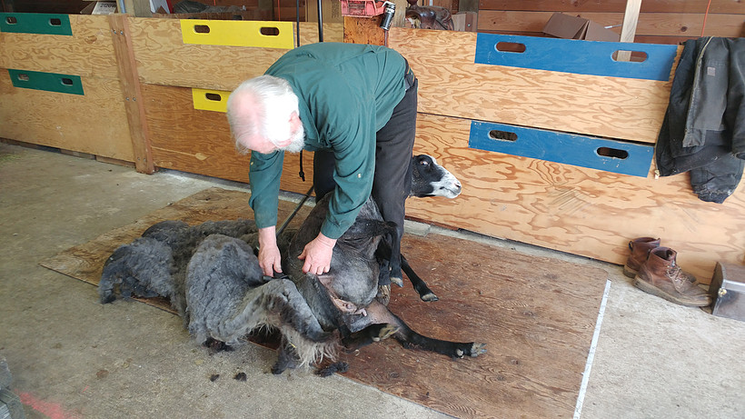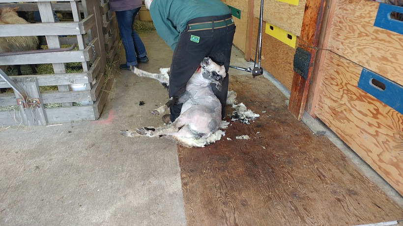 The time passed quickly as we waited for Lee's Shearing Bee - and I was lucky enough to have a wonderful friend volunteer to haul my sheep to Lee's place in her horse trailer! I was so used to being able to cart around the small sheep in my Toyota Sienna that I was really having a hard time figuring out what to do with Daisy and Cupcake - and I am now in the process of purchasing my own small horse trailer for future shearings! But this time around we were blessed by the kindness of a friend, so everyone was safely transported to shearing in a very large, accommodating horse trailer!