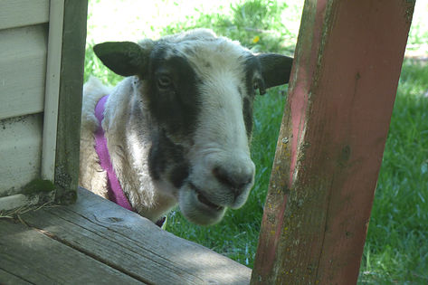 Finally, I'd like to share with you just how smart my sheep are...I'm sure many of you have heard the myth that sheep are dumb animals. Much of this reputation is due to their nature as flock animals - they have very few ways to protect themselves, so when they are frightened, they flock up - they stick together, which can make it very difficult to move them out of harm's way (thus the need for herd dogs on the big sheep farms). People get frustrated with them and assume they're just stupid because of how they behave, when actually, they behave that way because eons of evolution have taught them that that is their best chance for survival in a threatening situation. But I digress...sheep are NOT dumb, and my Trio prove this quite often because...they know words. Nope, I'm not kidding. They know the words "bread" and "num nums" - when anyone says "bread," they perk up and look around for a bag of bread to magically appear, and "num nums" refers to their sweet feed that they got over the winter to add calories to their diet. If I make the mistake of uttering "num nums" now, they either look up the hill toward their feed bowls that are no longer being used, or they actually run up there, like they used to do when I would bring out their morning sweet feed. So...proof positive...the vast vocabulary of my sheep - bread and num-nums - means they are highly intelligent ovines!