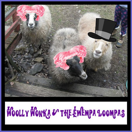 In the wide world of yarn and fiber, there are some really excellent indie makers - and some of them have the cutest names for their businesses! one of these is Wooly Wonka Fiber - don't you just ADORE that name??? It kind of got stuck in my head, and I giggled over it for a bit, and then I thought about corresponding names for the Oompa Loompas...and then I GOT IT! Woolly Wonka and his Ewempa Loompas! And because I enjoy sharing silliness with my sheep, I went outside and told Mikey all about it - yes, I do talk to my sheep, I really hope this doesn't shock anybody at this point! So I asked Mikey, "Mikey, how about I call you Woolly Wonka, and your sisters can be your Ewempa Loompas!" Without missing a beat, Mikey sneezed on me. I kid you not - a big, sheepy sneeze, all over me. Sheep sneezes can be quite messy, and clearly Mikey was not impressed with my proposed name-change, or my silliness, so I got sneezed upon. Probably for the best as I don't think I could have convinced any of them to wear top hats or wigs: