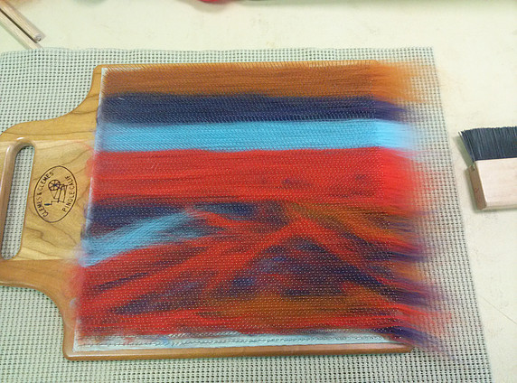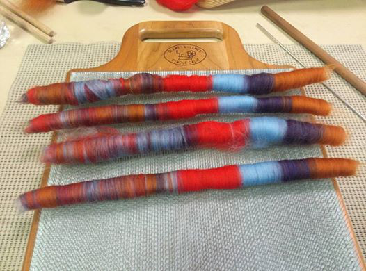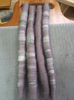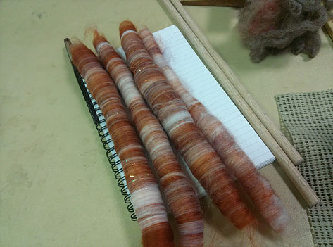 The class was fantastic - I learned lots of great tricks for making smooth, easy-to-spin rolags, and the instructor, Gwen Powell, was very generous with the fiber she provided! In addition to learning how to properly use the blending board, Gwen also made sure we had loads of different fibers to try out on the board - there was wool, of course, but she also included alpaca, synthetic fibers like faux cashmere and firestar, angora, and even feathers! Basically she made sure we got a lot of hands-on work with our blending boards - I think I made about 60 rolags that day!