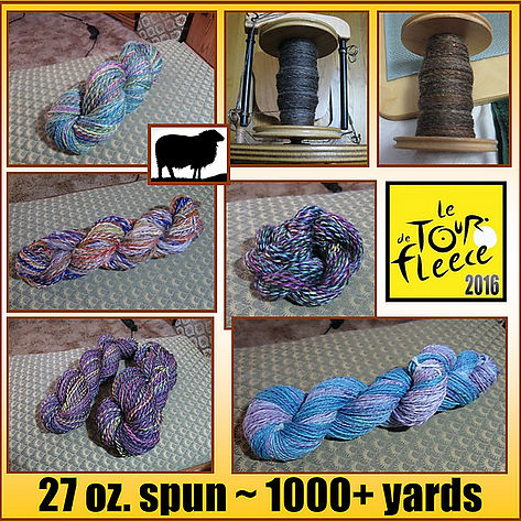 After I returned home from BSG, it was time to get ready for TdF - Tour de Fleece! This year's Tour ran from July 2nd through the 24th, in conjunction with the Tour de France, and I am absolutely THRILLED with our Blaine Fleece and Fiber Team - we had 36 spinners sign up for the team, and of those, only 3 ended up not participating! Not only did LOTS of spinning happen (with only 50% of the team reporting their finished yardage, we spun 17,300 yards!), but friendships were made, and the level of support and camaraderie was through the roof! Folks posted questions they had about their spinning, and members responded quickly to help - some even took the time to post video and photo tutorials! My personal goal was to spin 1 ounce of fiber everyday of the Tour, but unfortunately, I wasn't able to do that - I had to quit spinning about halfway through as I started out spinning too much everyday, and managed to really mess up my back and ribcage (yeah, it's true...between spinning, plying, and making batts, I managed to put some ribs out of place, which caused massive inflammation under my shoulder blade...I'm currently doing PT to fix things, so hopefully I'll be back to normal in a few more weeks). But even though I didn't spin everyday, I still managed to spin 27 ounces of fiber into over 1,000 yards of yarn! And I've already started knitting with some of it, and couldn't be happier!