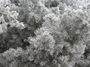 Even though it's miserable for humans to be outside in this, I still love the winter - and I'm so hopeful that because we don't have a layer of snow insulating the ground, it might mean we get a lessening of the bugs next summer. If it means fewer yellow jackets and ticks, I'm all for freezing fog! Of course, when I see the frozen fog on my sheep, I do ponder knitting sweaters for them:
