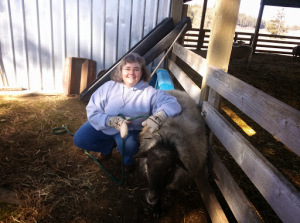 This week I also learned from Lee that in addition to their pasture foraging, they have to have mineral feed and salt, everyday. So I'll be purchasing two feeders to hang in the barn, near their hay feeder. AND I was able to "help" (another term I'm throwing out there in the loosest possible manner) her vaccinate Black Velvet:
