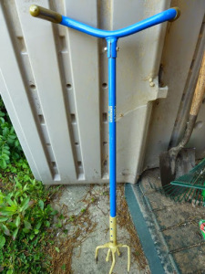 So we're nearly to the part where we can rake the last bits out. After that, my plan is to use this funky digging tool that I have (Dear Husband calls it "THE CRAW" as it is a Garden Claw) to get all of the dirt loosened up and make sure any last bits of crap that I missed are torn apart: