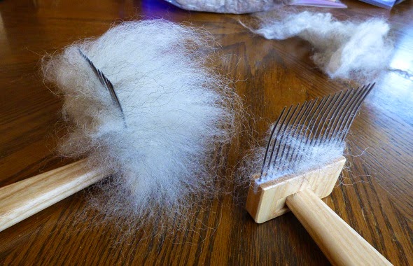 After only one wash in Dawn and one rinse, I had beautiful, clean Icelandic fleece to start combing! I am a BIG believer in the ability of Dawn to clean dishes and to, literally, get grease out of the way - now I know that it is powerful stuff because of its ability to clean the lanolin out of a fleece so effectively! (And no, I do not work for Dawn, am not compensated for giving my opinion about Dawn, and do not know anybody who works for Dawn!)