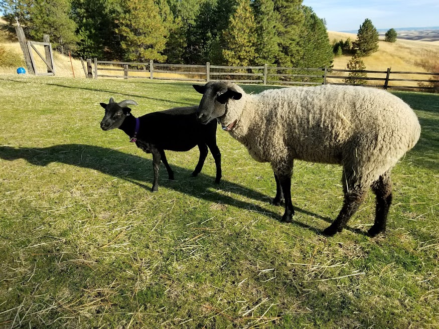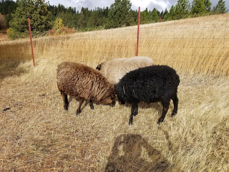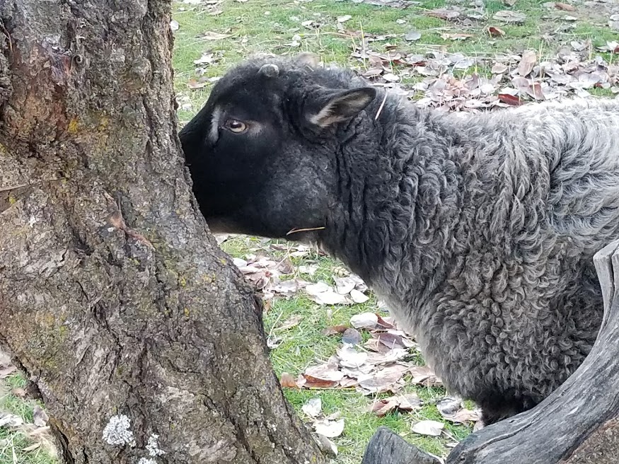You'll notice in the post-shearing pictures that Panda Bear is still sporting her wool coat! After being so sick in January, I've never felt like she gained very much weight back. She did fine all summer, but she just doesn't have the same mass to her like she did before the copper debacle. There was a veterinarian from WSU at shearing, and I asked her to give Panda Bear a look to see if I should let her keep her fleece - if she can't keep weight on, and doesn't have wool to keep warm, her body is going to be working overtime to stay warm as opposed to keeping a healthy weight, and that can mean disaster for a sheep, particularly one who is no spring chicken (she is 9, which is late middle age/early old age for sheep). Dr. Tasha gave her a thorough exam - not just the lookover that I thought she would (again, I don't have the words to express how awesome the sheep vets from WSU are!!!)! Afterward, she said that she was really impressed with how far PB had come since her illness - she knew the situation because they discuss Panda Bear's history as a way to teach about copper toxicity! Yes, Miss PB is still quite the famous sheep! So she said that yes, she is doing well, but she agreed with me - she doesn't have the weight on her to get through winter without her wool. I was so grateful to have that confirmation and to know that I was making a good decision for my sweet Bear!