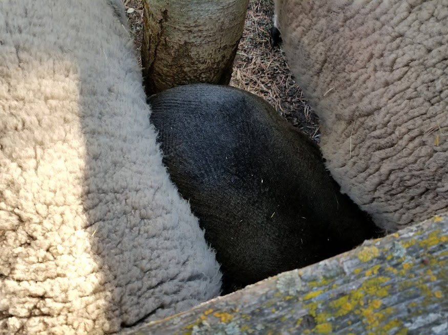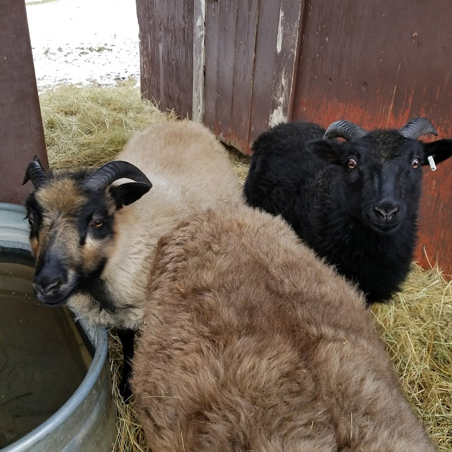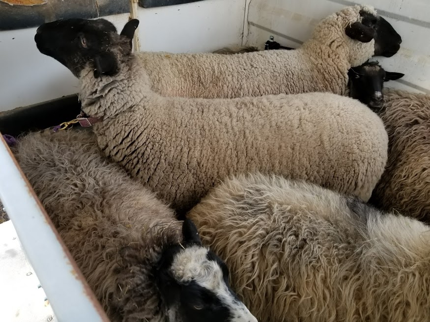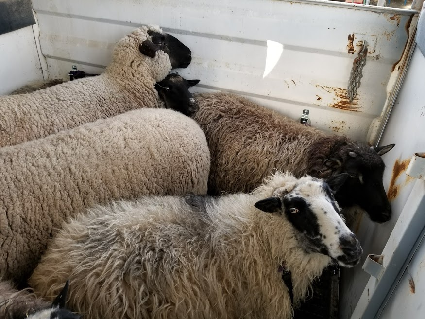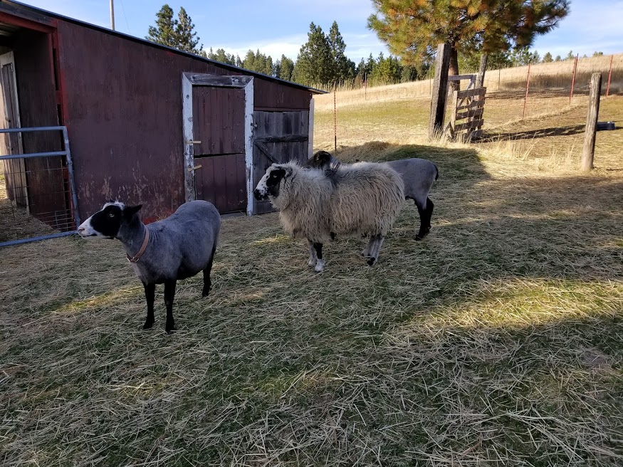I thought I would share some pre and post Shearing Day pictures - it's always so amazing to see how different the sheep look! You would think I'd be used to it by now, but I'm always shocked at how tiny they are without their wool, and it was made even more obvious this fall with both Daisy and Cupcake remaining unsheared. Being Hampshire/Suffolk crosses, they do not grow wool at the same rate as Icelandics or the Finns, so they are only sheared in the spring, but I did take both of them to shearing so that they could get their hooves trimmed, their vaccination, and their worming medicine given to them by the wonderful vet students from Washington State University who come to our Shearing Bee! In addition, Daisy had a bit of a trim...on her backside. There is a shearing procedure called crutching - this is simply the removal of wool from around the tail and between the rear legs of the sheep. This is to help prevent flystrike, as well as to help expectant ewes keep clean before giving birth. Daisy isn't going to be giving birth, but we think her lack of a tail makes it difficult for her to urinate without getting it all down the backside of her leg - and last spring we found she had developed a really bad ammonia burn there because the wool had soaked up all of the urine over the winter. To prevent her being miserable and possibly getting infected sores on her leg, I had her crutched, so she has a rather bare bottom and legs now! But this is far preferable to being in pain or getting sick!