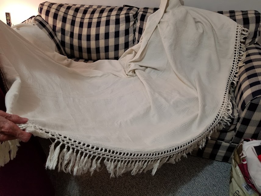 In 2021 I started a new crafting adventure - weaving! I'd been wanting to learn for several years, and thanks to an online friend through Zoom, I was able to get going on my Schacht 8-harness table loom! There is something about weaving that really speaks to me...if possible, even more than spinning and knitting! Knowing that at least one of my ancestors (one of my great-grandmothers on my mother's side) was a weaver is probably some of it, and the fact that I am in possession of the Southern Counterpane she made from scratch is so inspiring! She picked the cotton, spun the yarn, and wove the counterpane herself, sometime during the 1870s. So you might say that weaving is in my blood!