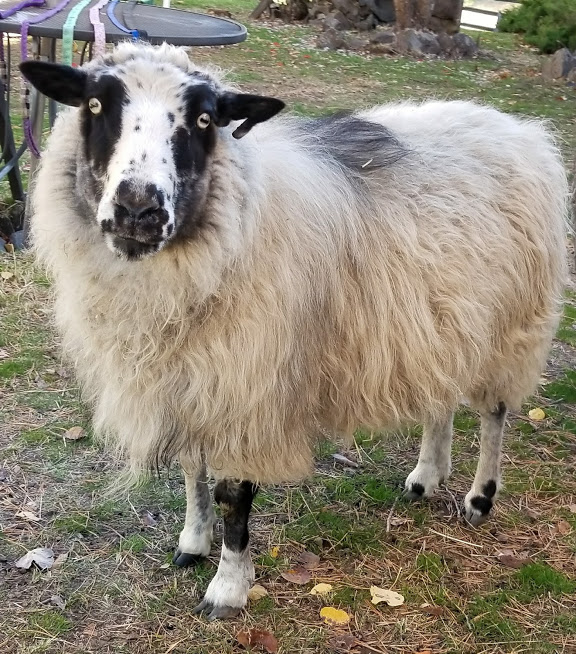 Panda Bear was a triplet from Minnie and a purebred Icelandic named Merle. She was 3/4 Icelandic, 1/8 Rambouillet, and 1/8 Columbia. One of her triplet siblings was Mikey, and Black Velvet was her half-sister. Panda Bear had the fiercest spirit of any creature, sheep or otherwise. She had a strong will to live, but her body couldn't keep up with her indomitable spirit. Her lovely face and big booming BAAH will be sorely missed.