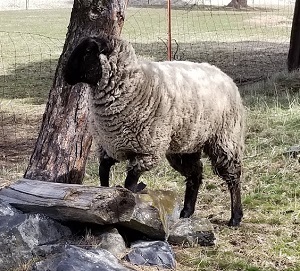 Black Velvet was a half-sibling to Mikey and Panda Bear, as they were all from the same ram, Merle - and she was only one day younger than her half-sister, born March 16th, 2008. She was 7/8 Icelandic, 1/16 Rambouillet, and 1/16 Columbia, and had the gorgoeus Icelandic fleece to prove it. Nicknamed "Lady Elegant Sheep," Black Velvet had a noble bearing and gentle demeanor - she never got mad at her humans, even when we had to do not fun things like give her medicine. She was always our brave Pioneer Sheep, normally the first to go graze, leading the rest of the flock down the hill and to the pasture! Black Velvet will never be forgotten.